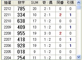 - 奇:偶。。。3数字の奇数と偶数の割合