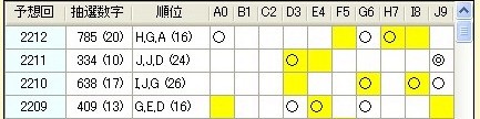 抽選数字は、黄色反転部。ランクは○、◎、●で示しています