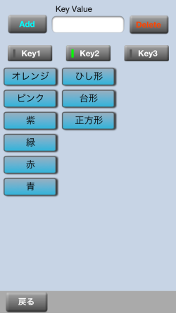 ![]() ”Key Value”欄に設定したい色名とか形状を入力し、 ”Add”ボタンをタップすると、選択されているKeyの一覧に追加されます |