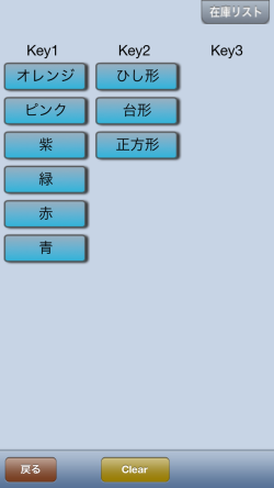 ![]() Key1には色、key2には形を入力した場合の例です |