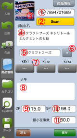 @CODE。。。商品コード。”Scan"ボタンAでバーコードを読み取った場合は、EAN/JANコードが入ります