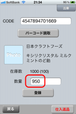 数量を入力して、”登録”ボタンをタップして