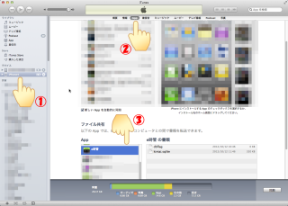 | 3.iTunesより、e時管のファイル共有までたどり着きます |