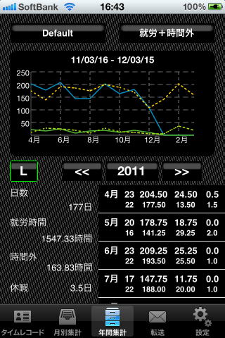 "タイムレコード”で選択されている