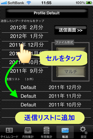 送りたい月データをタップ