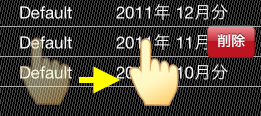 セルをスワイプ→削除ボタンをタップ |