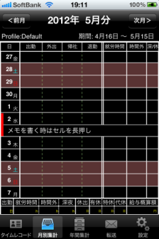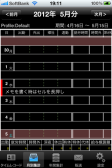 e時管 (メインカテゴリ:Business , 有料アプリ)勤怠管理アプリ iPhone4・、iPod touch(iOS 4.3以降)対応