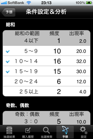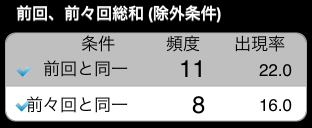 ★ ”条件絞り込み”設定ビュー 抽選結果の”分析”ビューと同じ様な構成ですが、